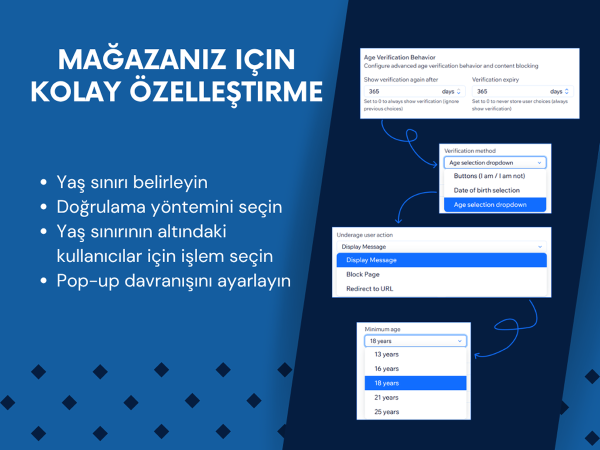 Ziyaretçiler yaşlarını basit evet/hayır seçenekleriyle veya doğum tarihlerini girerek doğrulayabilir, böylece akıcı ve kullanıcı dostu bir deneyim sunulur. Tüm cihazlarda sorunsuz çalışır ve kullanıcı tercihlerini hatırlayarak tekrar eden kesintileri önler.