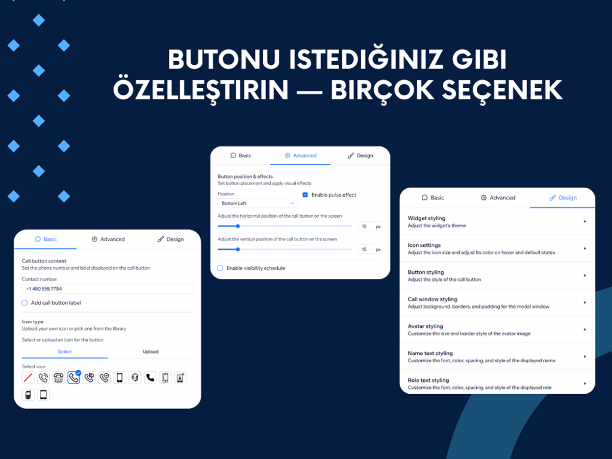 Özelleştirilebilir kayan arama butonu: İkon, renk, boyut ve konumu ayarlayın