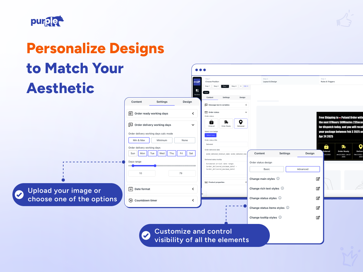 Kullanıcı Dostu Araçlar: Teslimat araçlarınızı metin, simgeler ve tasarımlarla özelleştirerek mağazanızın estetiğine sorunsuz bir şekilde uyum sağlayın.