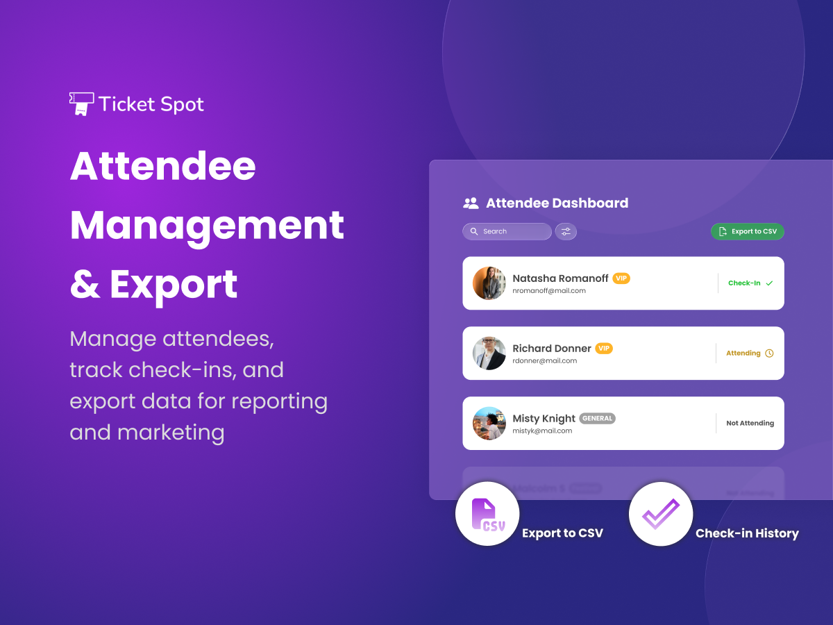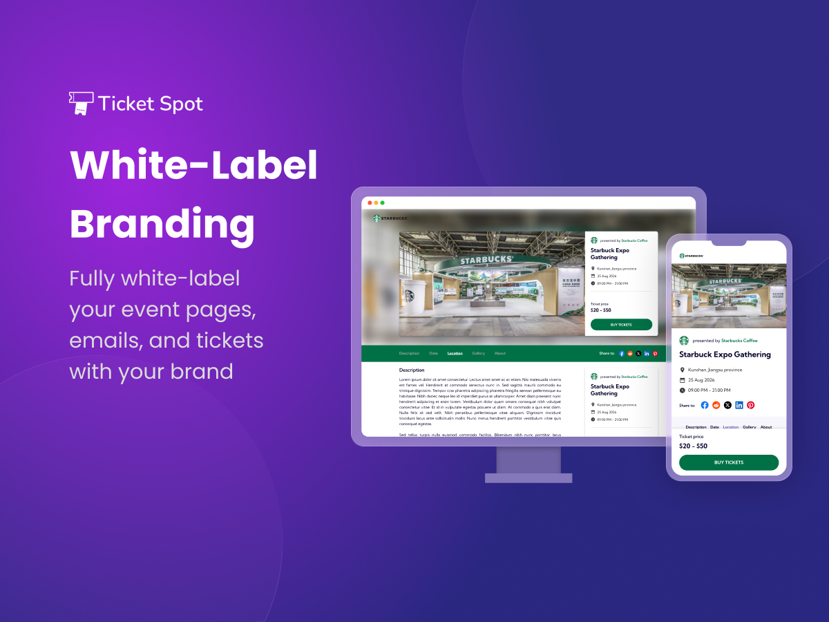 Ticket Spot provides event organizers with a professional, fully branded ticketing system that makes selling tickets simple while elevating the entire event experience.