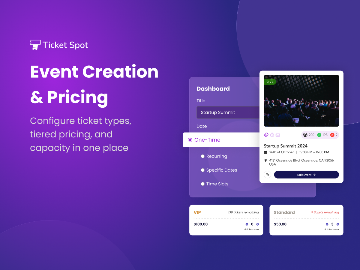 Ticket Spot is an all-in-one ticketing platform designed for event creators who want full control, branding, and performance.