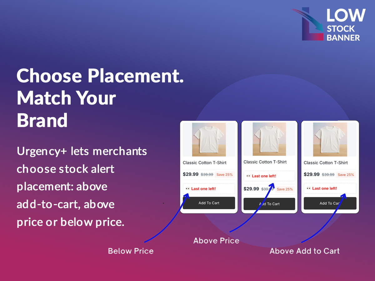 Flexible Display Rules: Take full control over where and when your alerts appear. Display them for all products, specific items, or entire collections, and set them to trigger automatically based on your defined inventory thresholds