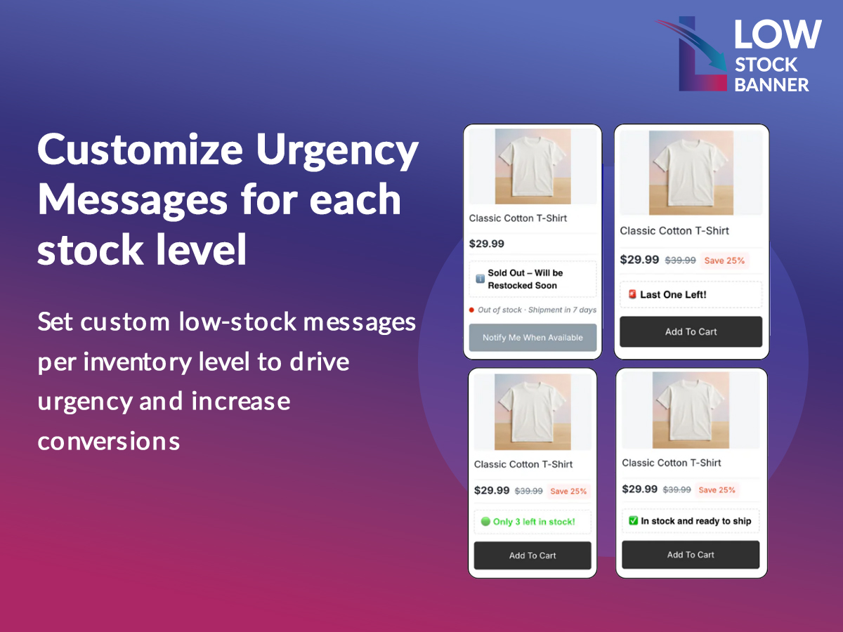 Drive Purchases Through Scarcity: Leverage the psychological principle of scarcity to create social proof and accelerate purchasing decisions. When customers see limited stock, they're more likely to act quickly