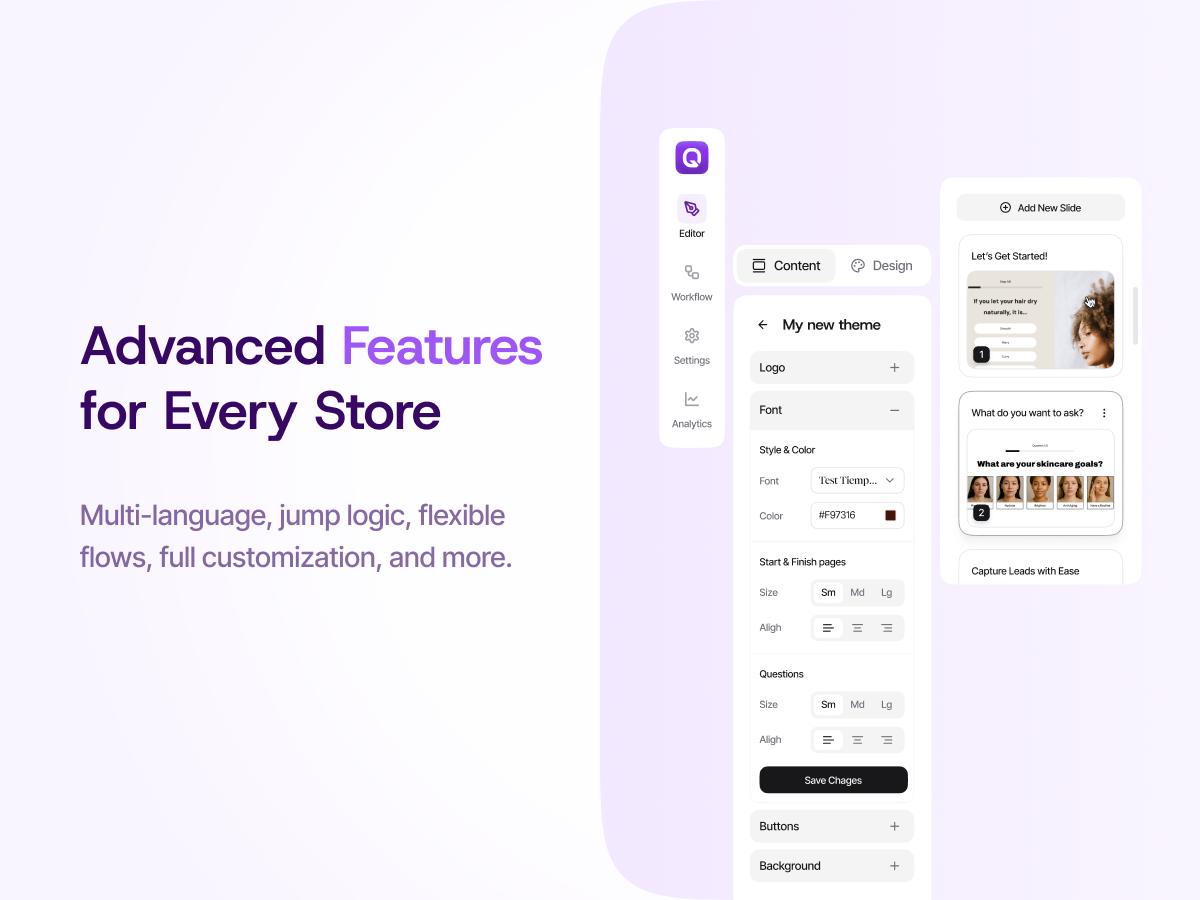 No-Code Builder: Design and customize quizzes, forms, and funnels with our intuitive drag-and-drop builder. No coding skills required, making it accessible for all users