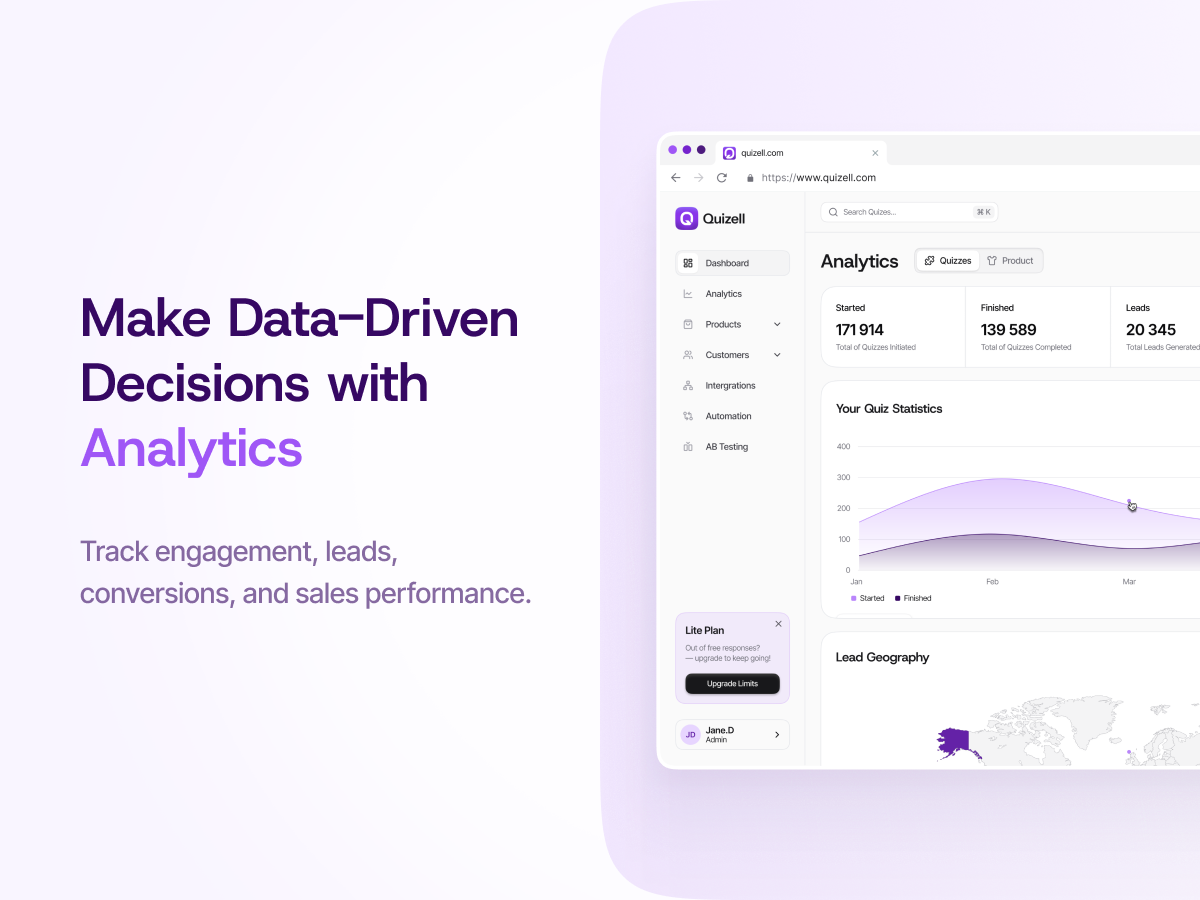 Advanced Analytics: Gain deep insights into user behavior and performance of quizzes, forms, and funnels with comprehensive analytics, helping you refine your marketing strategies