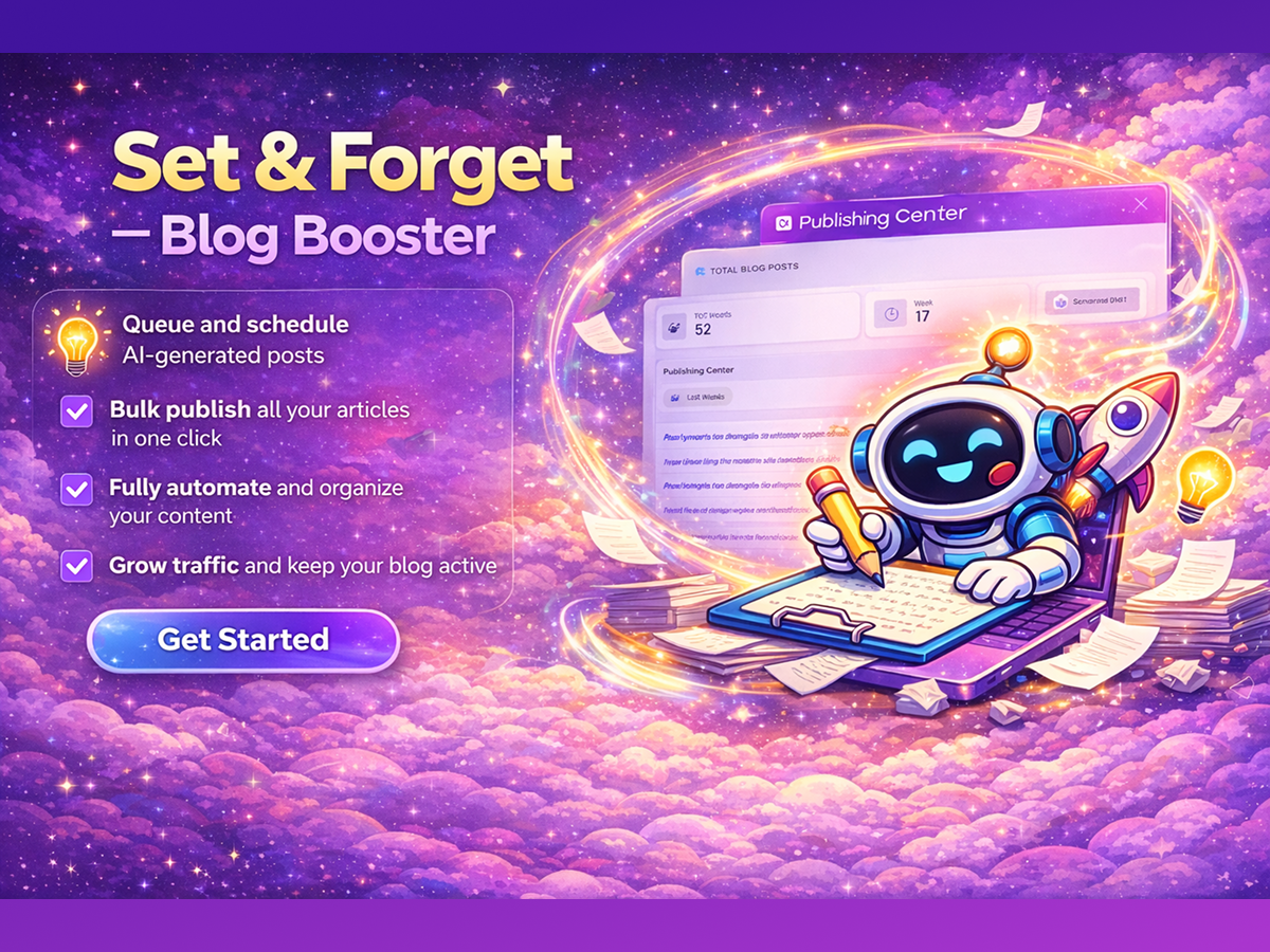 Set & Forget – AI Blog Publisher helps you grow your Blog without the daily work. Create blog posts using AI or your own content, then publish them instantly, schedule them for later, or publish in bulk — all from one simple dashboard. Designed for business owners, agencies, and content creators, the app removes the manual effort from blogging and keeps your site fresh with consistent content. Use AI to generate blog posts in multiple languages, automatically apply categories, tags, and hashtags, and schedule posts in advance to match your content strategy. Whether you’re publishing one post or dozens, Set & Forget makes the process fast, reliable, and stress-free. Perfect for anyone who wants to maintain an active blog, improve visibility, and save time — without complicated setups or daily management. Set it once, and let your blog work for you.